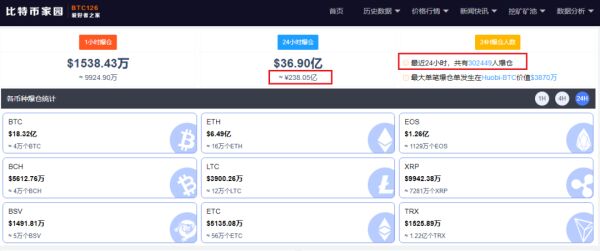 比特币家园数据显示,过去24小时,加密货币市场有30.25万人爆仓,爆仓金额超过238亿元。