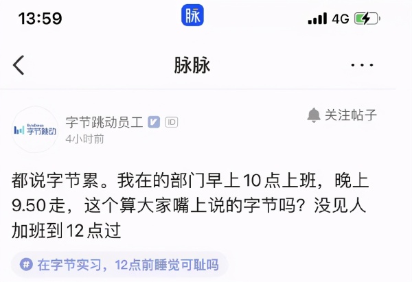 这件事情也在脉脉职业区火了。一位该大厂的员工表示:“我在的部门早上10点上班,晚上9点50分走,没见人加班到12点过。”